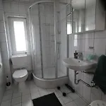 Ferienwohnung Blumengarten有2间卧室. 1间洗澡间配有淋浴,吹风机和毛巾.